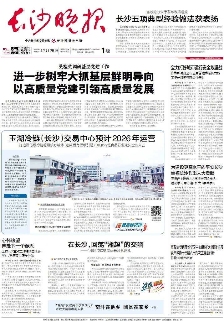 长沙晚报12月25日头版聚焦报道玉湖冷链长沙项目,记者深入园区实地探访项目的最新建设进展。报道指出,作为长沙2025年铺排的重点建设项目之一,玉湖冷链(长沙)交易中心项目从2024年7月全面开工,到2025年5月全面封顶,再到如今外立面完工,正以肉眼可见的速度拔节生长。该中心将推行覆盖全流程的国际化标准管理体系,从入库检验、仓储管理到出库配送,每个环节均制定严格的操作规范与品质标准。同时引入先进的冷链物流数字化管理系统,实现从仓储、运输到配送的全链条可视化、可追溯化管理并通过物联网技术实时监测温湿度,确保商品品质。项目建成后,预计将引入超700家冷链食品行业龙头企业入驻,涵盖全球食材供应商、本地农产品加工商、跨境贸易服务商等全产业链主体。