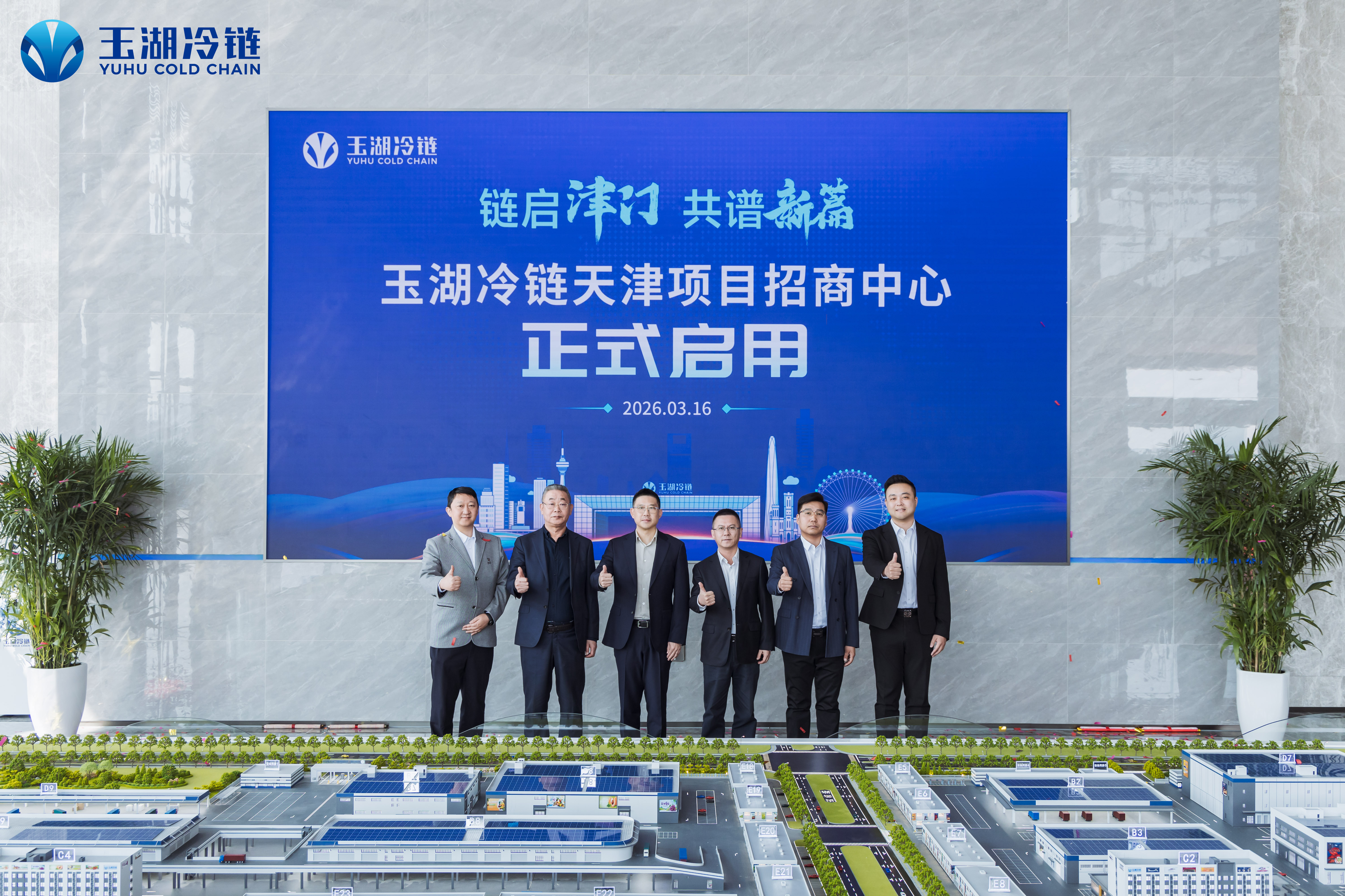 3 月 16 日,“链启津门 共谱新篇”——玉湖冷链天津项目招商中心启用仪式圆满举行。玉湖冷链副总裁兼天津公司董事长王骏出席活动并致辞,与特邀嘉宾中建一局(集团)第五建筑有限公司玉湖冷链(天津)交易中心项目副书记兼工会主席邓青川及天津公司管理团队共同为招商中心剪彩启幕,宣告玉湖冷链(天津)交易中心全面启动招商。这也标志着玉湖冷链北方战略布局迈出关键一步,正式开启京津冀冷链产业发展新征程。