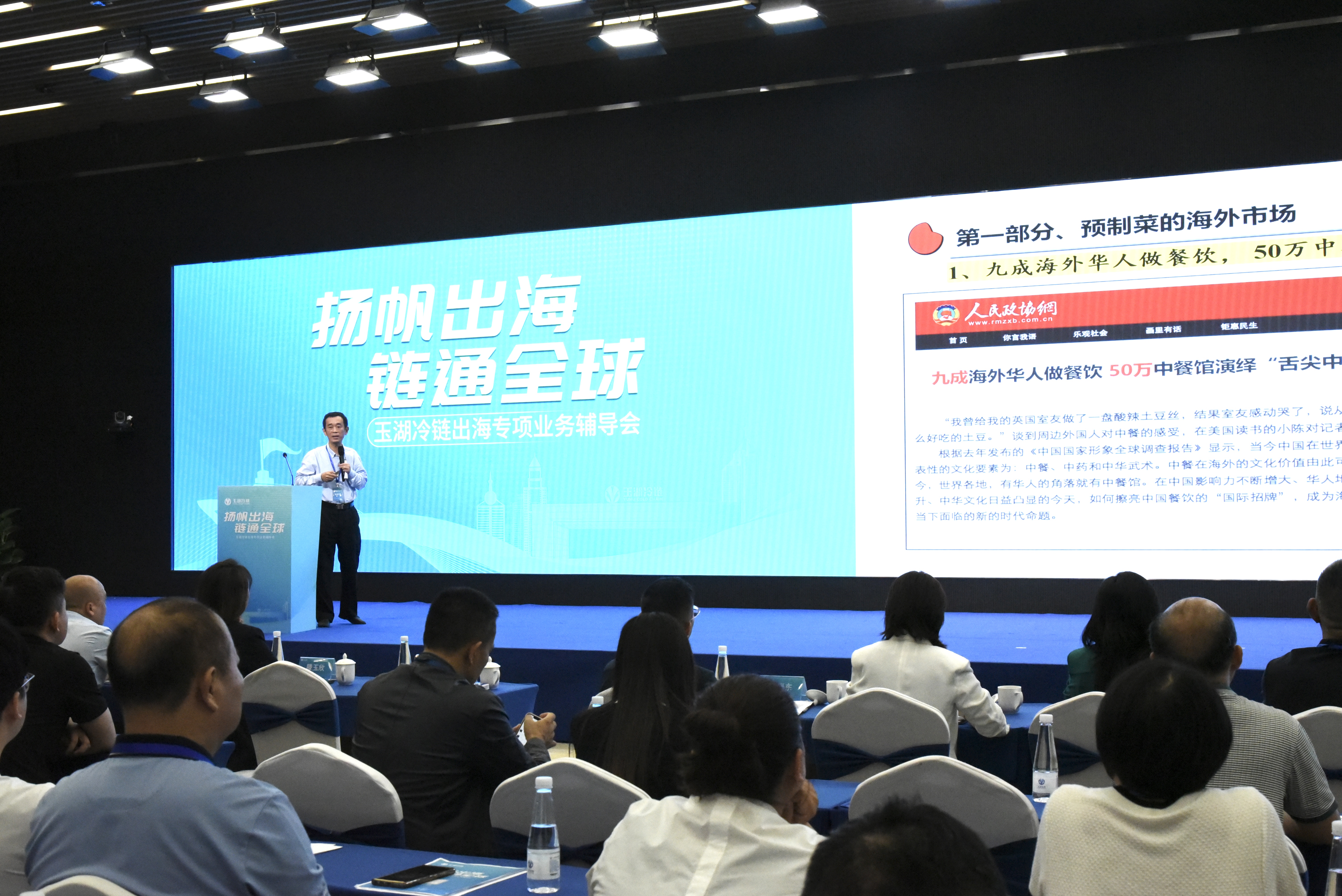 2026年4月21日,“扬帆出海·链通全球”玉湖冷链出海专题系列活动第5期——出海专项业务辅导会在玉湖冷链(广州)交易中心圆满举行。本次活动由玉湖冷链主办,得到花都区商务局、花都海关、江西省农业农村厅、山东聊城驻深办、中国绿色食品协会、广东省食文化研究会等单位的大力支持。来自政府监管部门、国际物流、海外合规、金融服务、行业商协会及食品供应链企业的近两百位代表齐聚一堂,围绕政策解读、1039模式落地、冷链物流、海外准入、金融结算及海外渠道对接等核心议题,展开全天深度交流与资源对接。